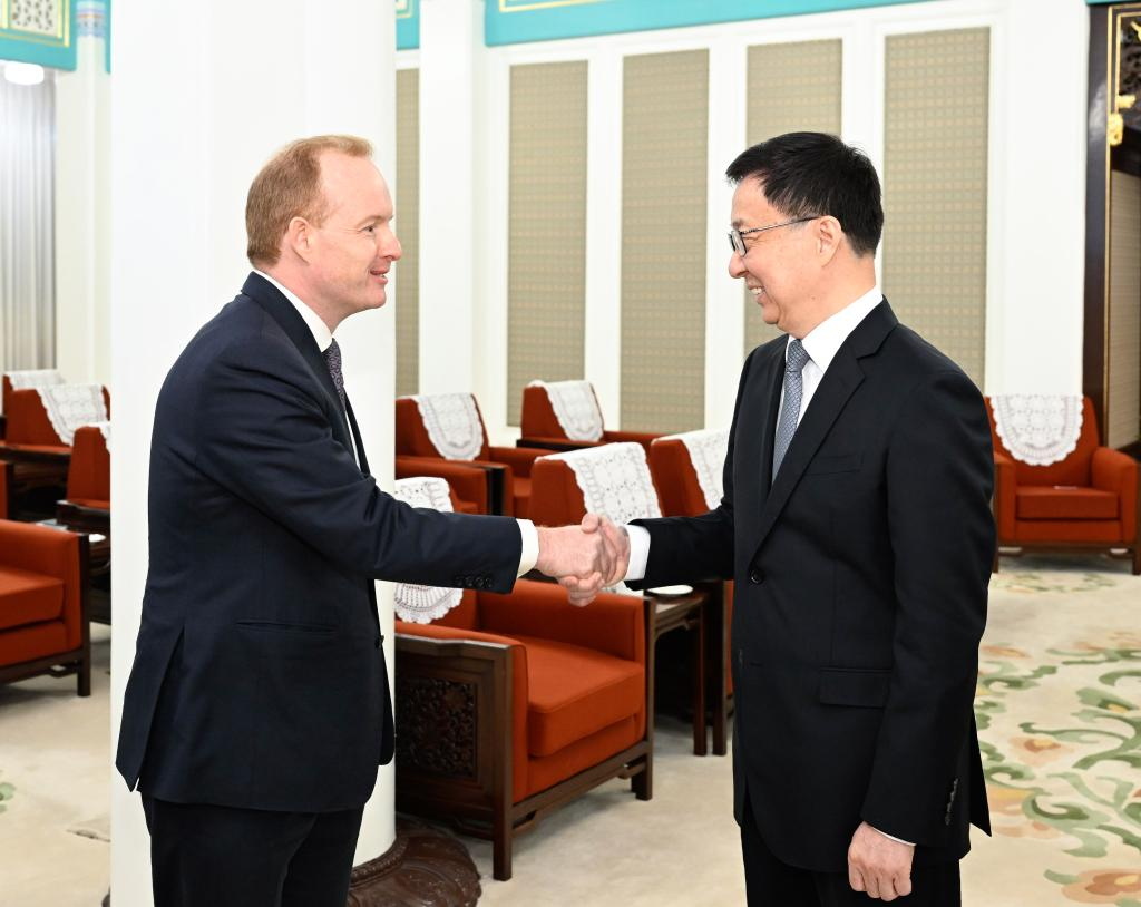 Chinese Vice President Han Zheng meets with John Swire &Sons Limited Chief Executive Officer Merlin Swire, who attends the China Development Forum 2023, in Beijing, capital of China, March 27, 2023. (Xinhua/Shen Hong)