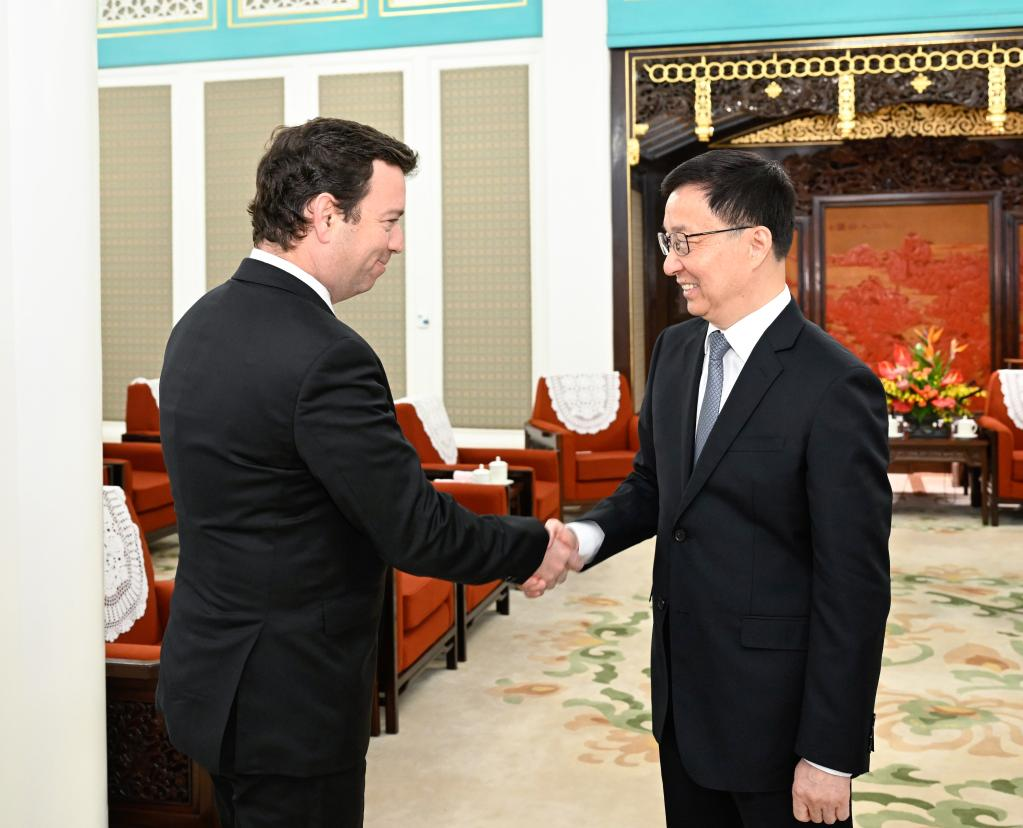 Han made the remarks on Monday and Wednesday during his meetings with leaders of multinationals who attended the China Development Forum 2023 held in Beijing.