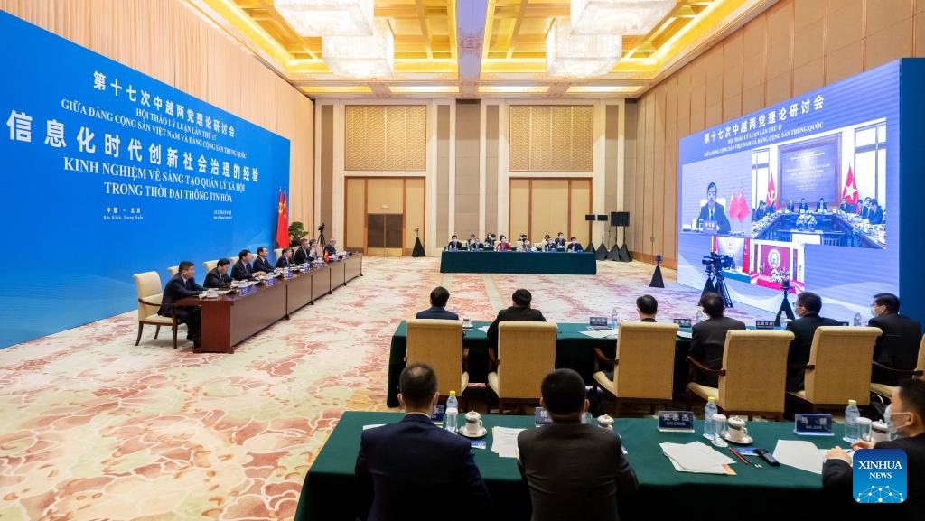 BEIJING, March 29 (Xinhua) -- The Communist Party of China (CPC) and the Communist Party of Vietnam (CPV) held their 17th theory seminar on Wednesday via video link, exchanging experience gained in the development of new approaches to social governance in the era of informatization.