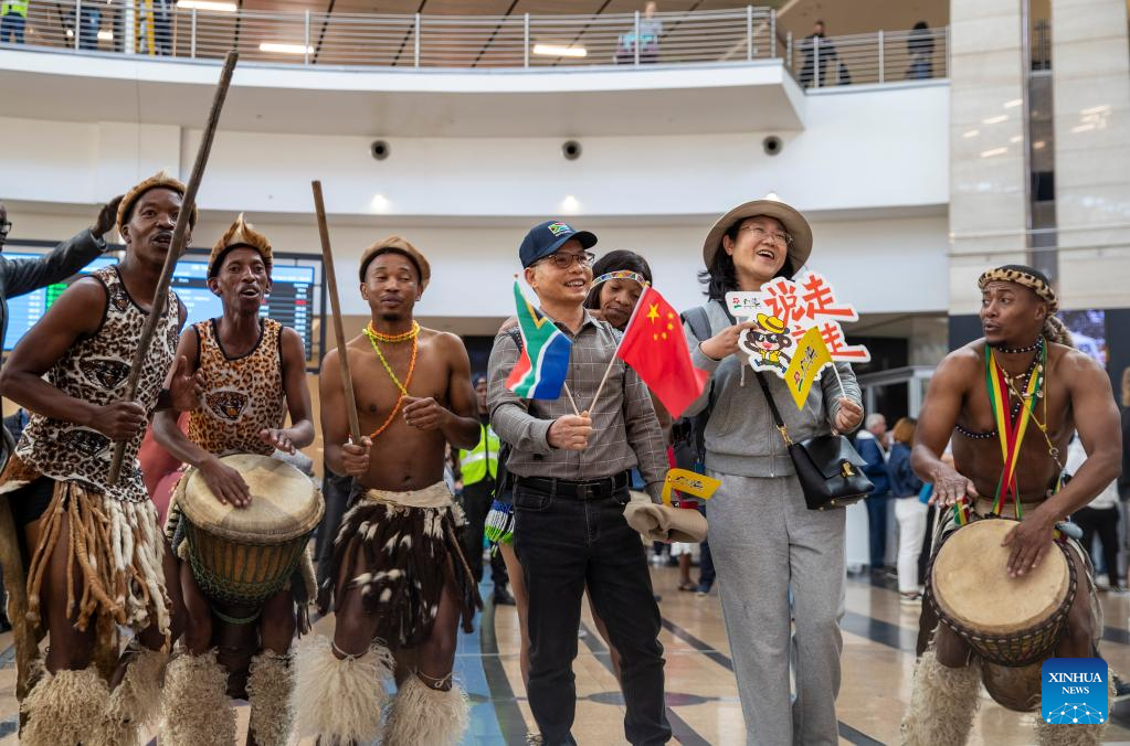 A welcoming ceremony with local traditional dances was held at the OR Tambo International Airport in Johannesburg for the 13 Chinese tourists, who arrived at the airport on an Air China flight, becoming the first group of Chinese tourists into the country after the COVID-19 pandemic.