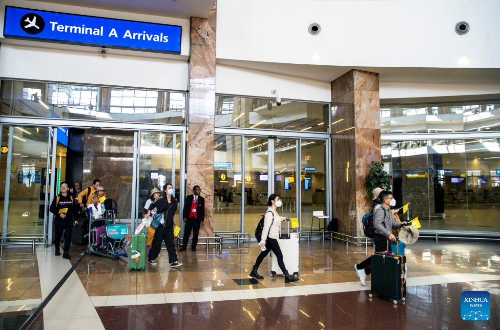 Tourists from China arrive at the OR Tambo International Airport in Johannesburg, South Africa, on March 29, 2023. South Africa's tourism authority on Wednesday welcomed the first group of tourists from China since the outbreak of COVID-19. (Xinhua/Zhang Yudong)