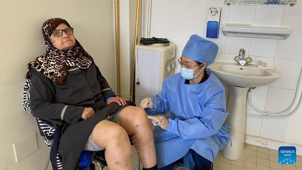 Chinese acupuncturist Yang Yi performs acupuncture therapy for a patient at the Traditional Chinese Medicine (TCM) center in Algiers, Algeria, March 20, 2023. (Chinese Medical Team to Algeria/Handout via Xinhua)