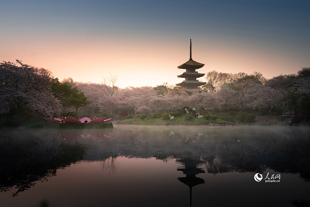 Photo taken on March 26, 2023 shows a dreamlike view at East Lake in Wuhan city, capital of central China's Hubei Province. (People's Daily Online/Xiao Luxin)