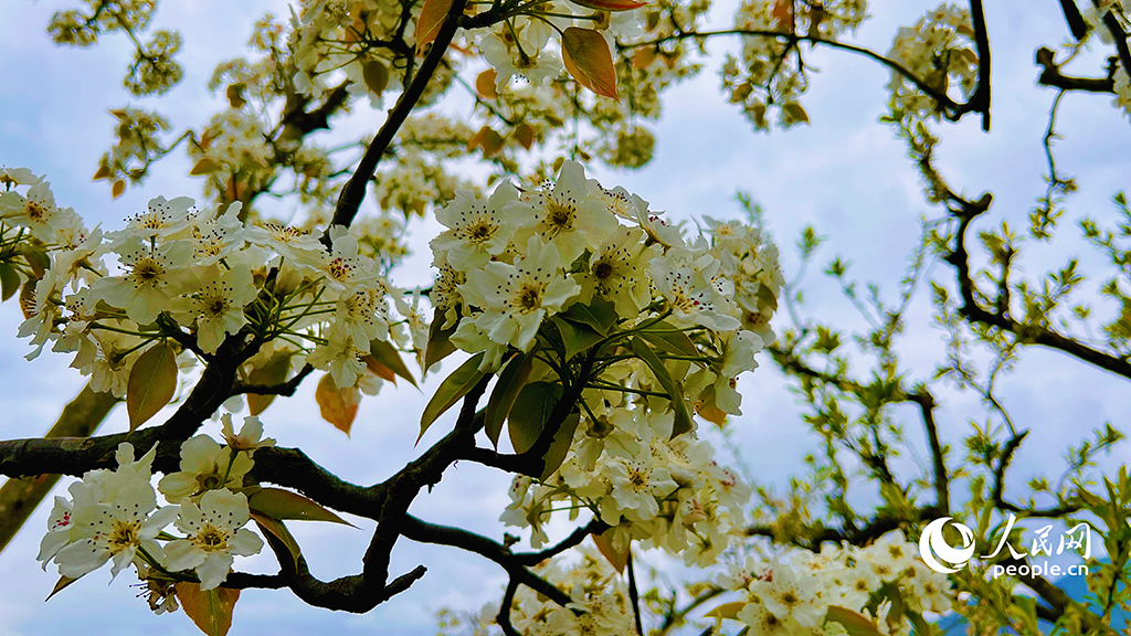Photo taken on March 28, 2023 shows white pear blossoms in Shiyi village, Beichuan Qiang Autonomous County, southwest China's Sichuan Province. (People's Daily Online/Li Haoyang)