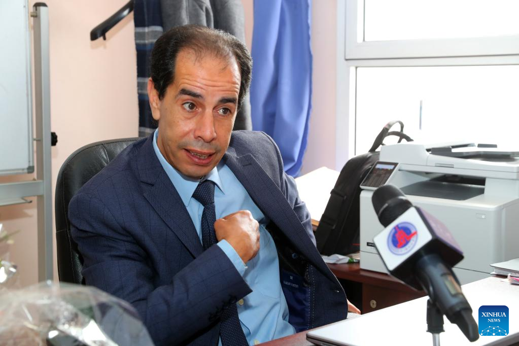 Achibet Mostafa, head of the Hassan II Hospital in Settat, is interviewed at the hospital in Settat, Morocco, on Feb. 27, 2023. For nearly half a century, Chinese doctors, mainly obstetrician-gynecologists, have earned a sterling reputation for their professionalism and dedication in some remote areas of Morocco. Many pregnant women from across the country come to seek medical advice and childbirth care from them. (Xinhua/Sui Xiankai)