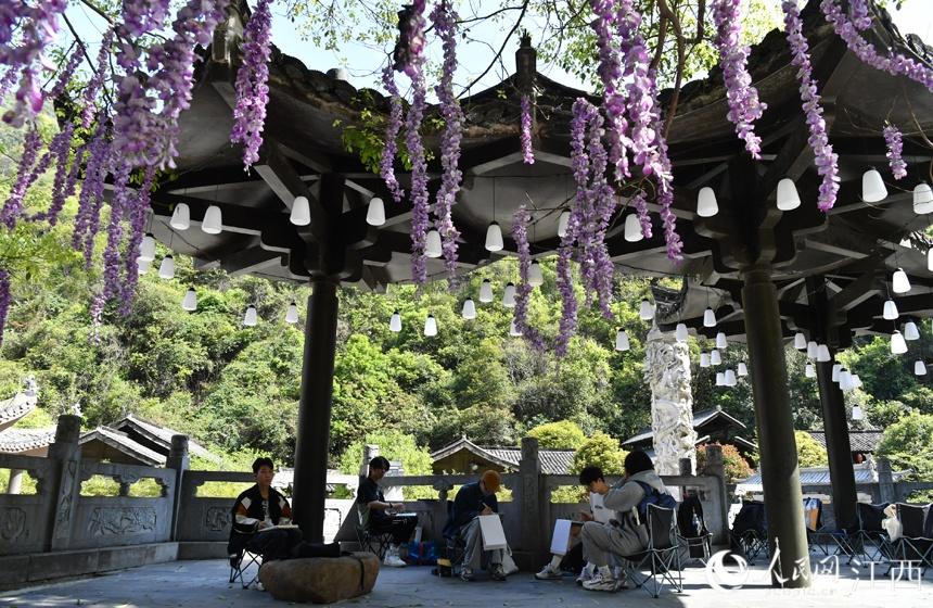 Photo shows students from a fine arts college drawing in Dajue Mountain, Zixi county, Fuzhou city, east China's Jiangxi Province. (People's Daily Online/Shi Yu)