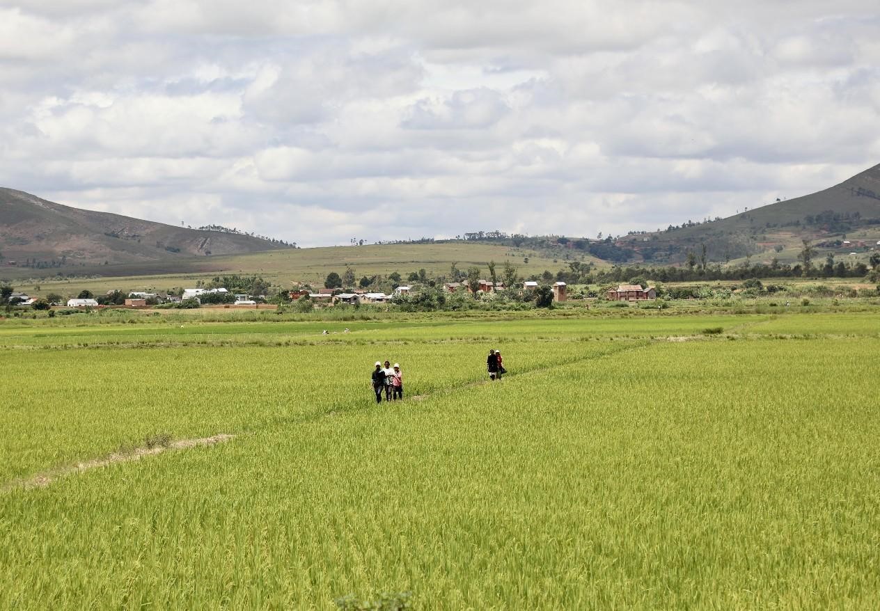 Over an hour's drive away from Antananarivo, capital city of Madagascar, there lies Fiadanakely village, Mahitsy, a town northwest of the capital. Rice in the vast paddy fields was earring as breezes brushed against the green seedlings.