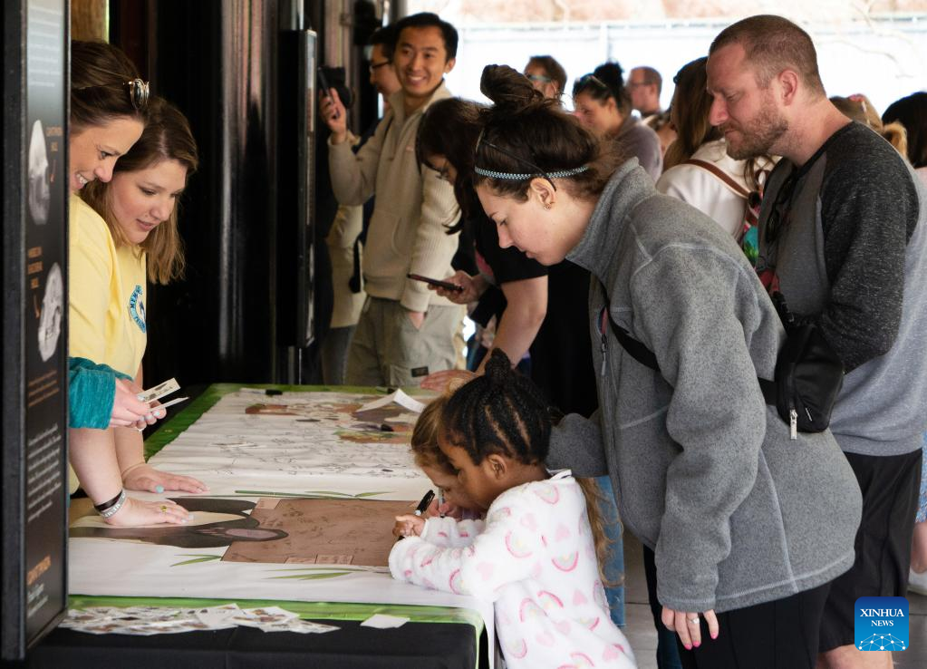 Visitors attend a farewell event for female giant panda Ya Ya at the Memphis Zoo in Memphis, the United States, April 8, 2023. The Memphis Zoo held a farewell event for Ya Ya on Saturday. Hundreds of people reportedly attended the sendoff at the CHINA exhibit, where they said goodbye to Ya Ya, signed letters, and watched cultural performances. (Photo by Adam/Xinhua)