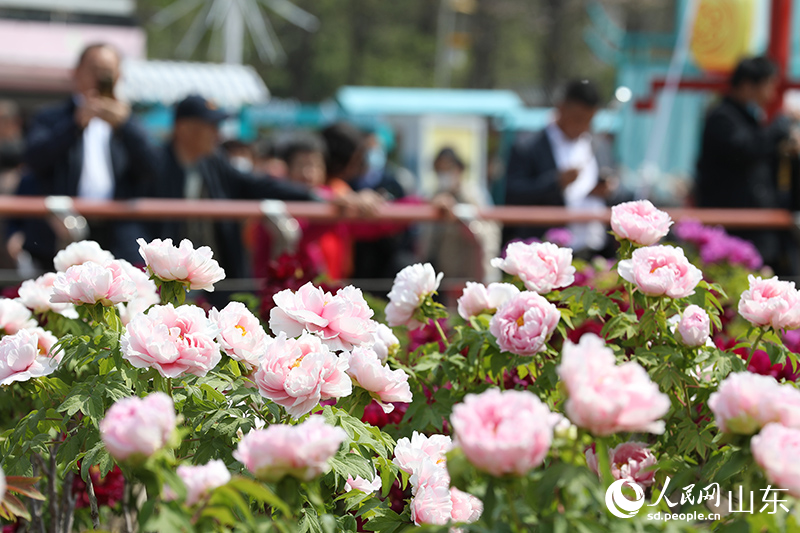 Photo shows blooming peony flowers at the Caozhou Peony Garden in Mudan district, Heze city, east China’s Shandong Province. (People’s Daily Online/Liu Qi)