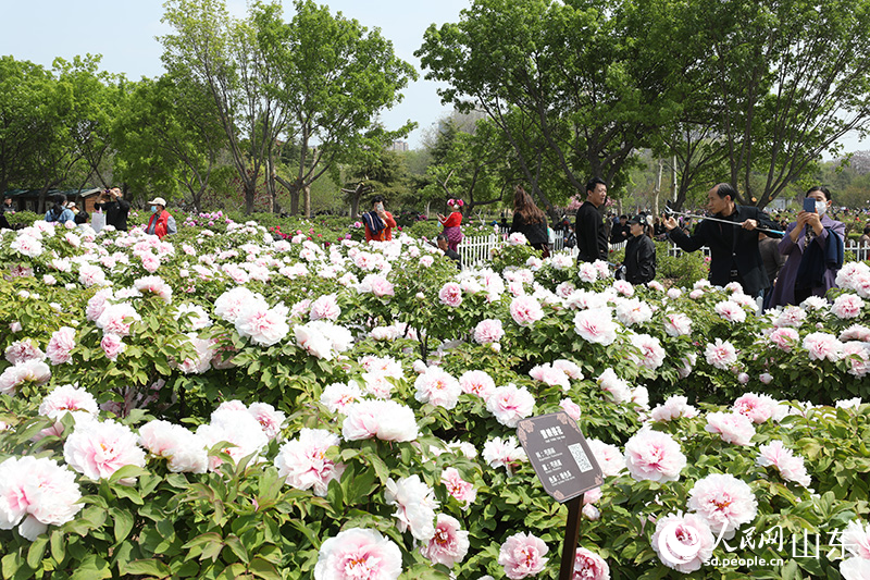 Tourists enjoy blooming peony flowers at the Caozhou Peony Garden in Mudan district, Heze city, east China’s Shandong Province. (People’s Daily Online/Liu Qi)