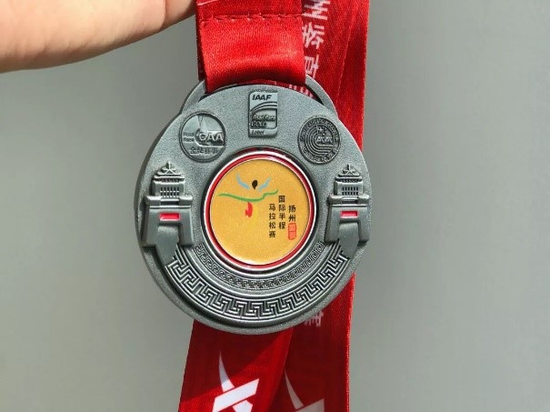 The finisher's medal for 2019 Yangzhou Jianzhen International Half Marathon. (Photo/WeChat account for marathon events in Yangzhou)