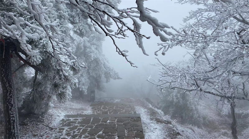 Photo shows rimes on Taishan Mountain in east China's Shandong Province. (Photo/Zhang Weitao)