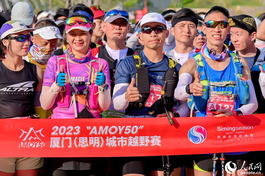Contestants prepare for the start of the 2023 AMOY50 cross-country running competition in Siming district, Xiamen, southeast China’s Fujian Province. (People’s Daily Online/Chen Bo)