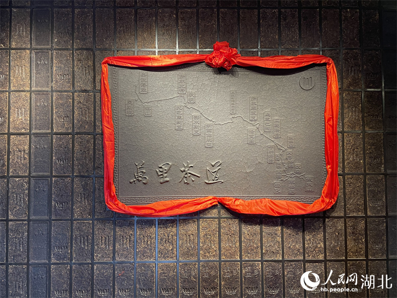 Photo shows a tablet of an ancient trade route that started from Wuyishan, a city in southeast China’s Fujian Province, and ended up in St. Petersburg, Russia in a museum of brick tea in Yangloudong, Chibi city. (People’s Daily Online/Guan Xiyan)