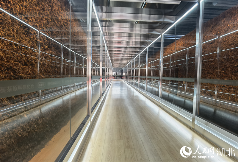 Photo shows the brick tea storage facility of the Yangloudong tea ecological industrial park in Chibi city, central China’s Hubei Province. (People’s Daily Online/Zhou Wen)