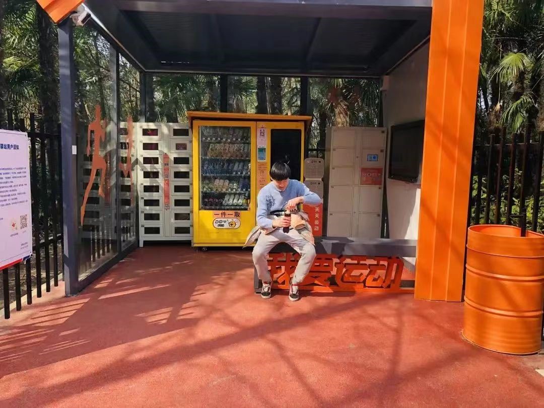 A citizen rests in a multi-functional service station in the Huangxing Park, Yangpu district, Shanghai. (Photo from the official account of the Shanghai Administration of Sports on WeChat)