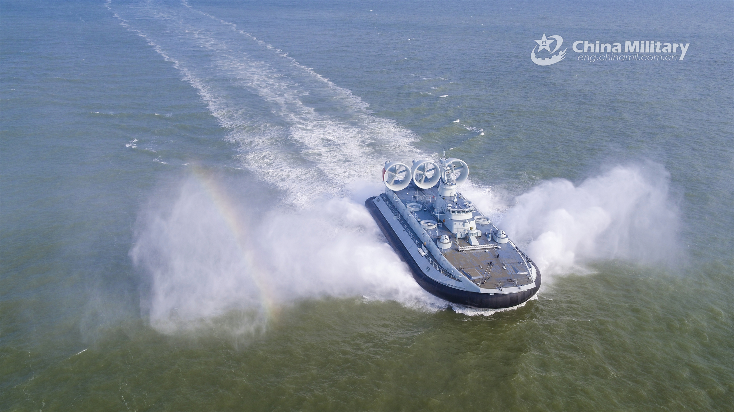 An air cushion landing craft attached to a naval landing ship group under the PLA Southern Theater Command sails on the sea during a three-day landing exercise in late March, 2023. (eng.chinamil.com.cn/Photo by Ze Tianyu)