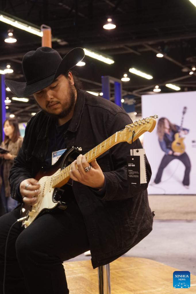About 1,200 exhibitors in the music industry from across the globe participate in the 2023 National Association of Music Merchants (NAMM) Show, one of the world's largest music industry trade shows, held in Anaheim Convention Center, U.S. state of California, from Thursday to Saturday.