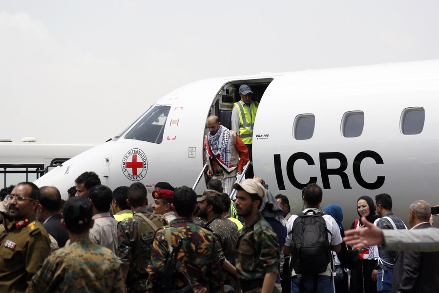 ADEN, Yemen, April 16 (Xinhua) -- In a significant step toward resolving the protracted conflict in Yemen, the country's warring factions successfully completed a massive exchange of prisoners on Sunday, with a total of 887 detainees swapped over three consecutive days.