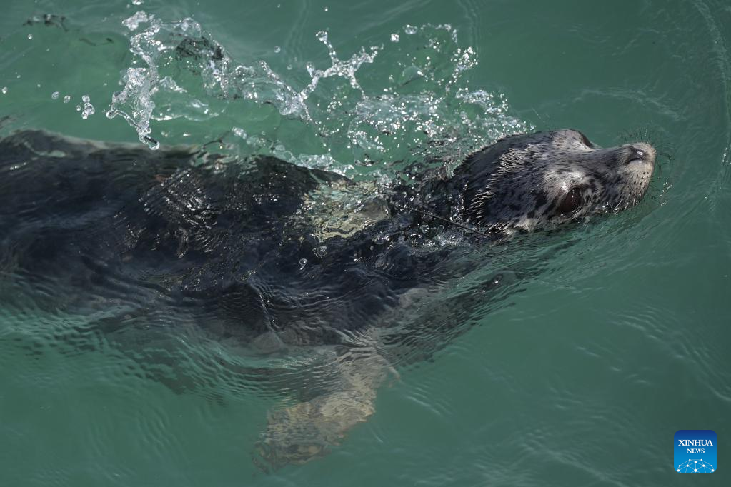 Spotted seals are released into the sea in Dalian, northeast China's Liaoning Province, April 16, 2023. A total of seven spotted seals were released into the sea on Sunday in the coastal city of Dalian. (Xinhua/Pan Yulong)