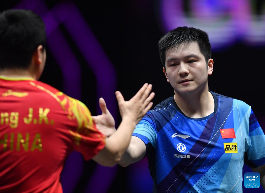 BEIJING, April 15 (Xinhua) -- Fan Zhendong and Sun Yingsha lived up to their top positions in the world rankings as both won all-Chinese finals at the World Table Tennis (WTT) Champions in Xinxiang, central China's Henan Province on Saturday.