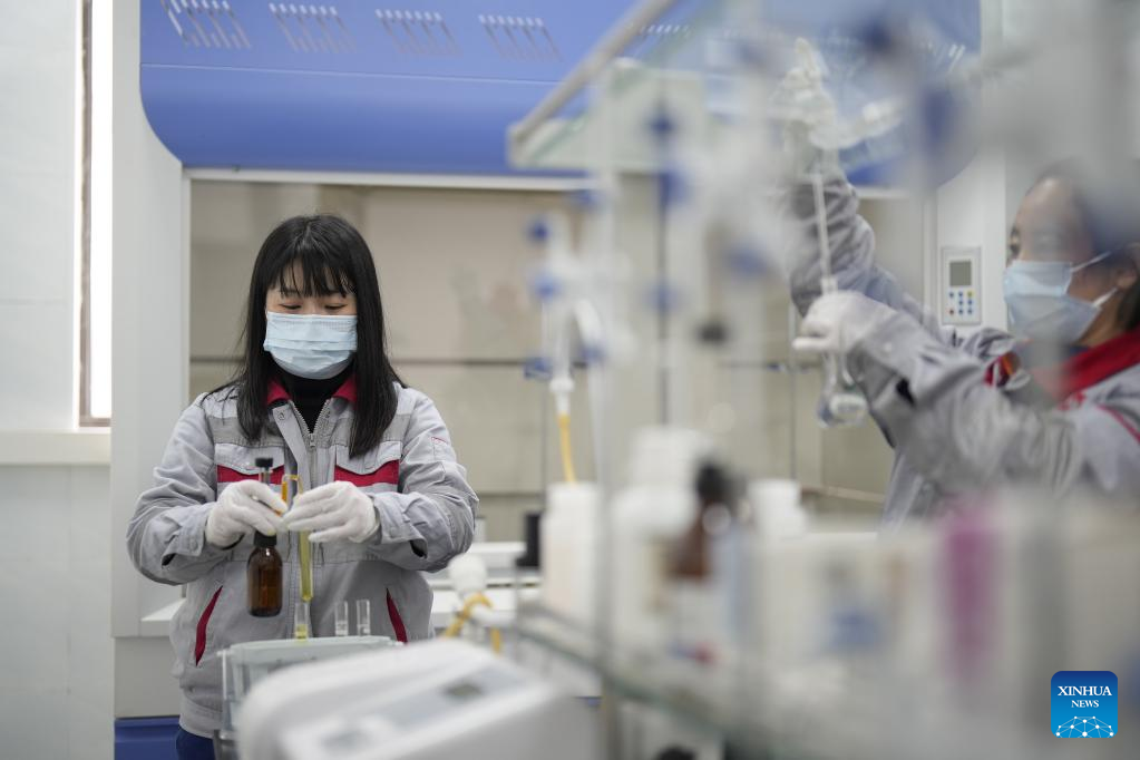 A worker tests the quality of processed water in a waste leachate treatment center at Tangshan Jidong Qixin Cement Co., Ltd. in Tangshan, north China's Hebei Province, April 13, 2023. The history of Tangshan Jidong Qixin Cement Co., Ltd., formerly known as Tangshan Qixin Cement Plant, dates back to 1889. In recent years, the company has switched to a high-quality green development mode, achieving both economic and ecological benefits. (Xinhua/Mu Yu)