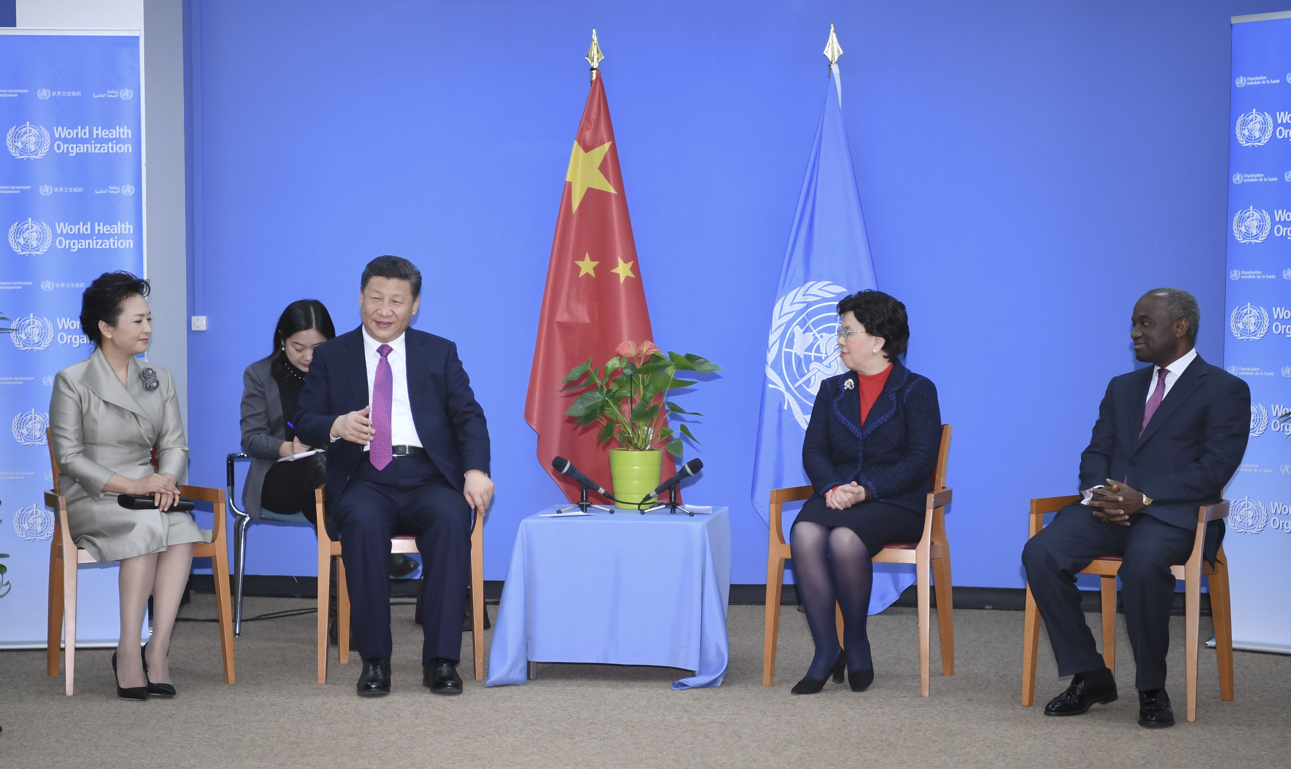 Chinese President Xi Jinping (2nd L) meets with Margaret Chan (2nd R), Director-General of WHO in Geneva, Switzerland, Jan. 18, 2017. (Photo/Xinhua)
