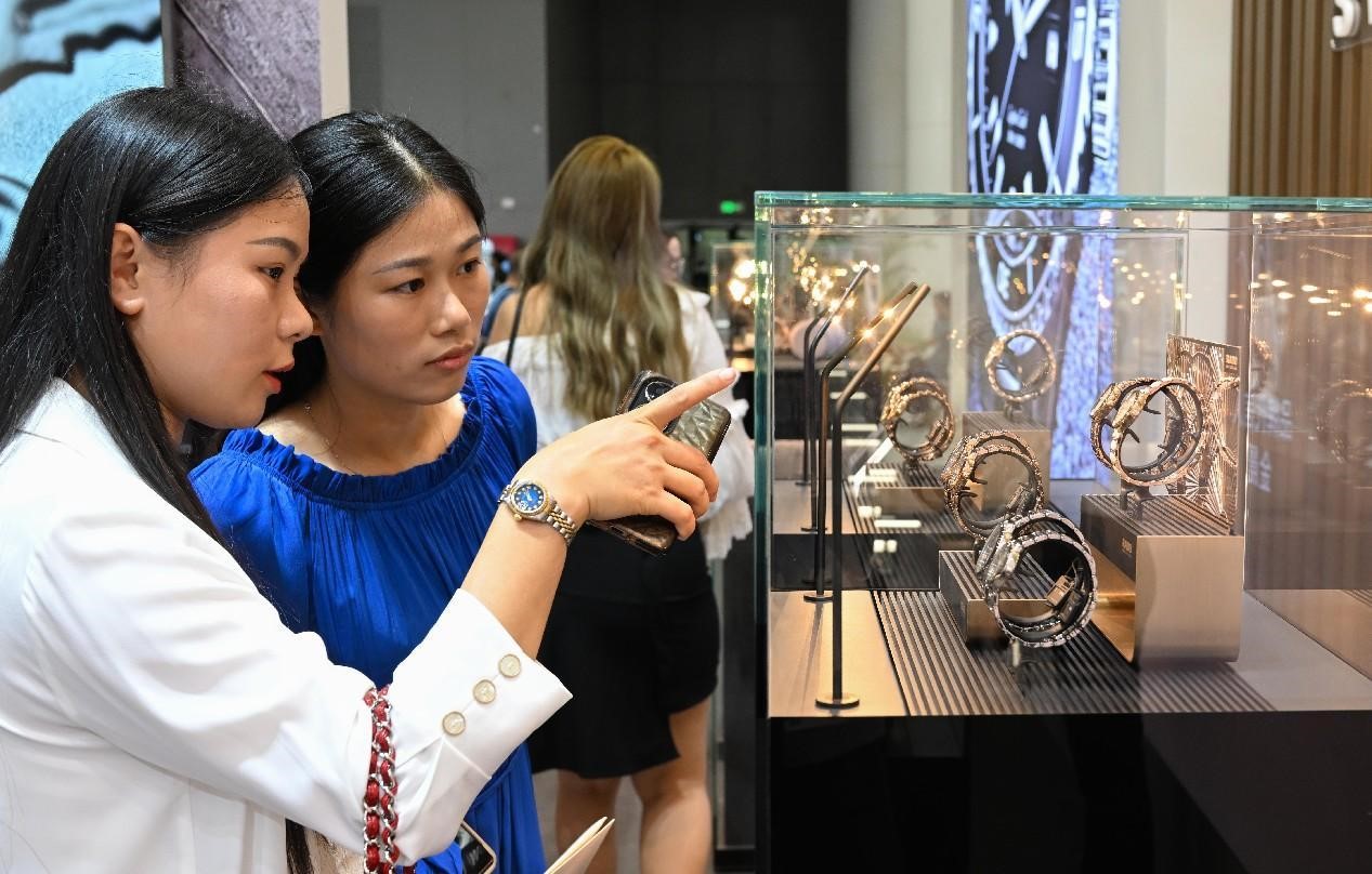 Swiss watches are exhibited at the third China International Consumer Products Expo, April 14, 2023. (People's Daily Online/Zhang Junqi)