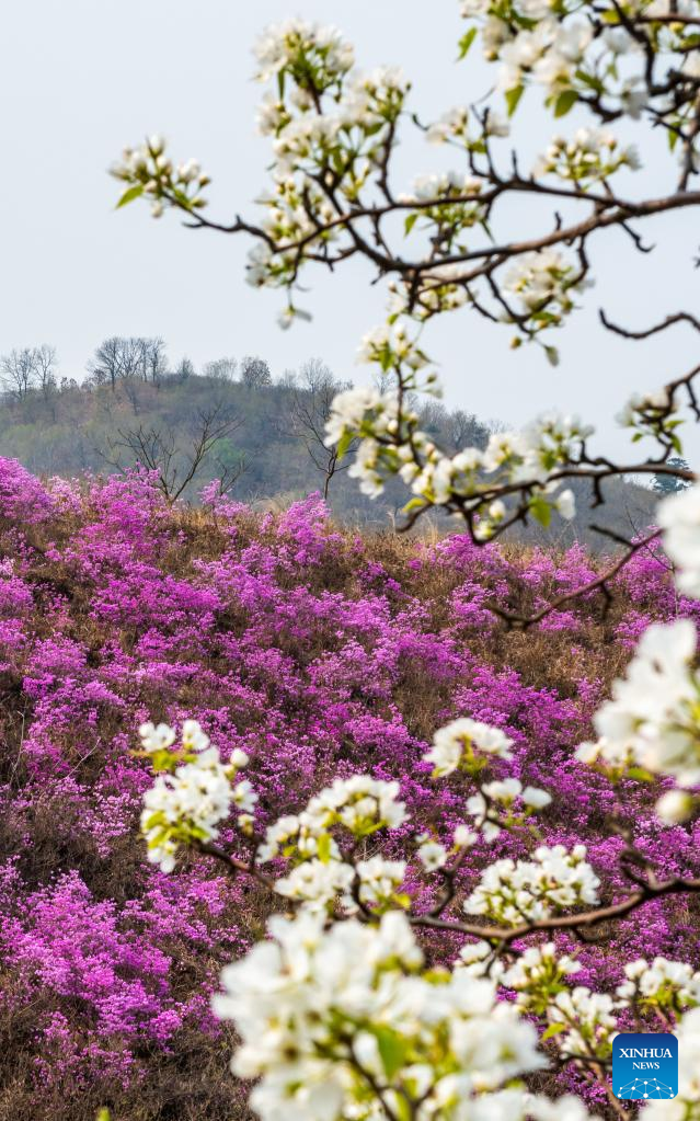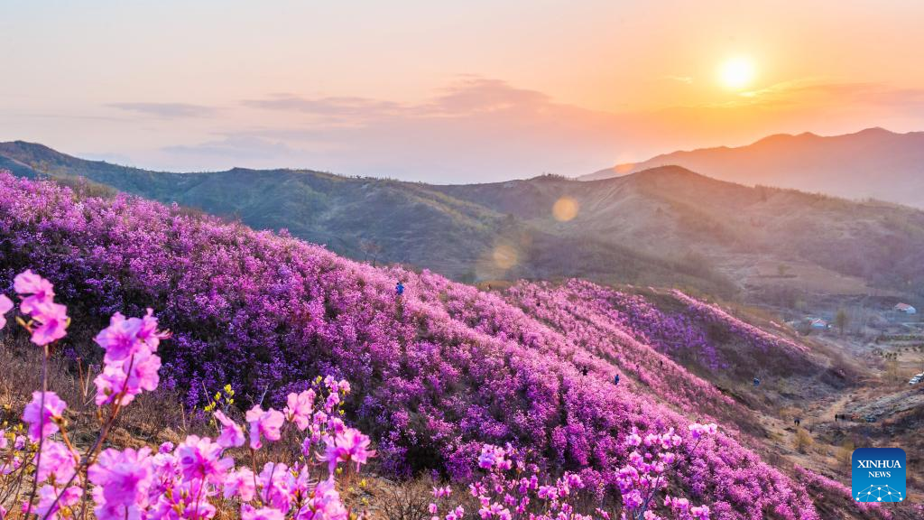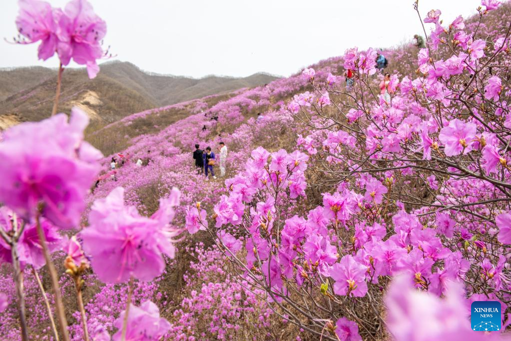 This photo taken on April 20, 2023 shows an azalea scenic spot in Huangling Village of Xiuyan Man Autonomous County, northeast China's Liaoning Province. (Xinhua/Yang Qing)