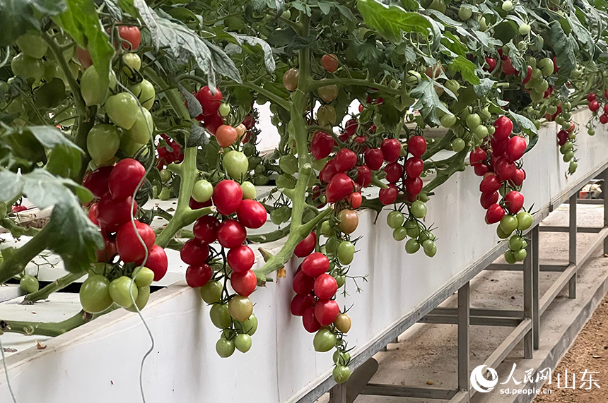 Photo shows cherry tomatoes on display at the 24th China (Shouguang) International Vegetable Sci-Tech Fair in Shouguang city, east China's Shandong Province. (People's Daily Online/Liu Qi)