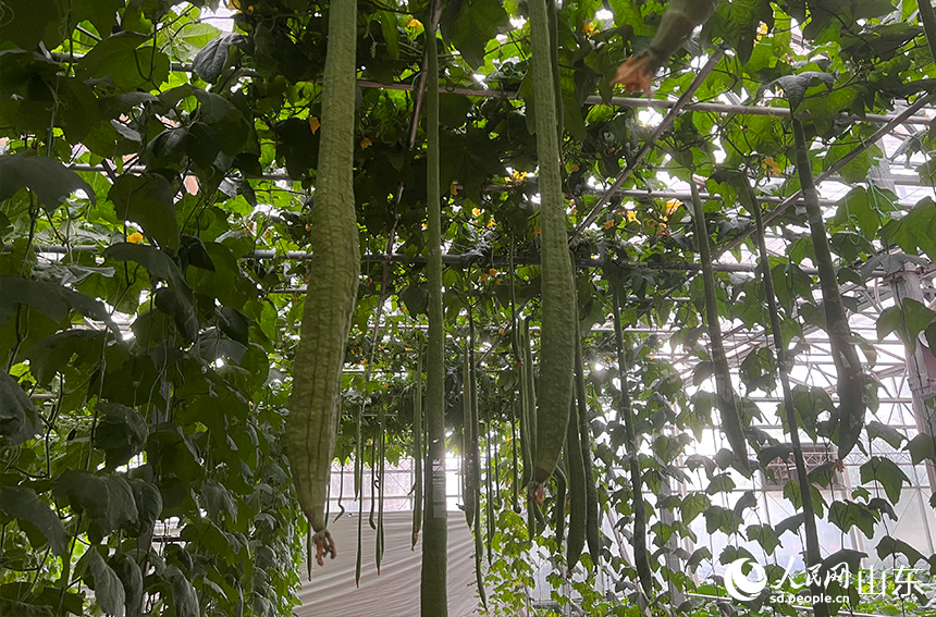 Photo shows loofah gourds on display at the 24th China (Shouguang) International Vegetable Sci-Tech Fair in Shouguang city, east China's Shandong Province. (People's Daily Online/Liu Qi)