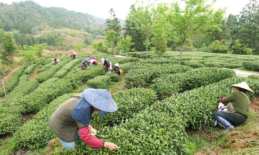 In 2021, the county’s planting area reached 40,600 mu (2,706 hectares), and its tea output hit 16,400 tonnes, with an output value of 900 million yuan in the tea industrial chain.