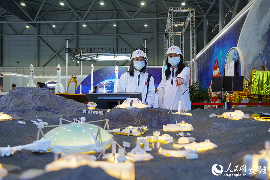 Photo shows a diorama at a thematic exhibition to mark the eighth Space Day of China held in Hefei city, capital of east China's Anhui Province. (People's Daily Online/Li Ximeng)