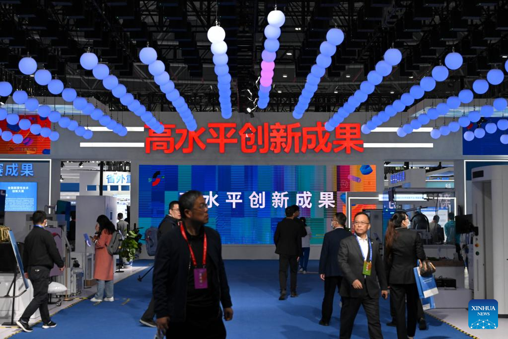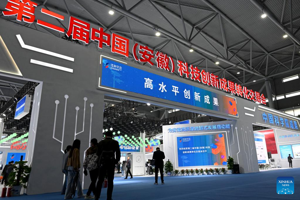 Visitors are seen at the 2nd China (Anhui) Science and Technology Innovation Achievement Transformation Fair held in Hefei of east China's Anhui Province, April 26, 2023. The three-day 2nd China (Anhui) Science and Technology Innovation Achievement Transformation Fair kicked off in Hefei Wednesday. (Xinhua/Huang Bohan)
