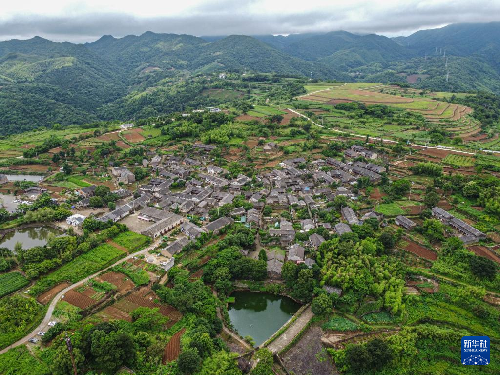 This aerial photo taken on June 10, 2021 shows the view of the Xumin Village in Ninghai County, east China's Zhejiang Province. China has inscribed a total of 8,155 traditional villages to its state protection list in an effort to conserve the country's millennia-old agricultural civilization, official data showed. Zhejiang is among the leaders in the country's rural vitalization drive, with great efforts being made to protect the natural environment and traditional culture. (Xinhua/Jiang Han)