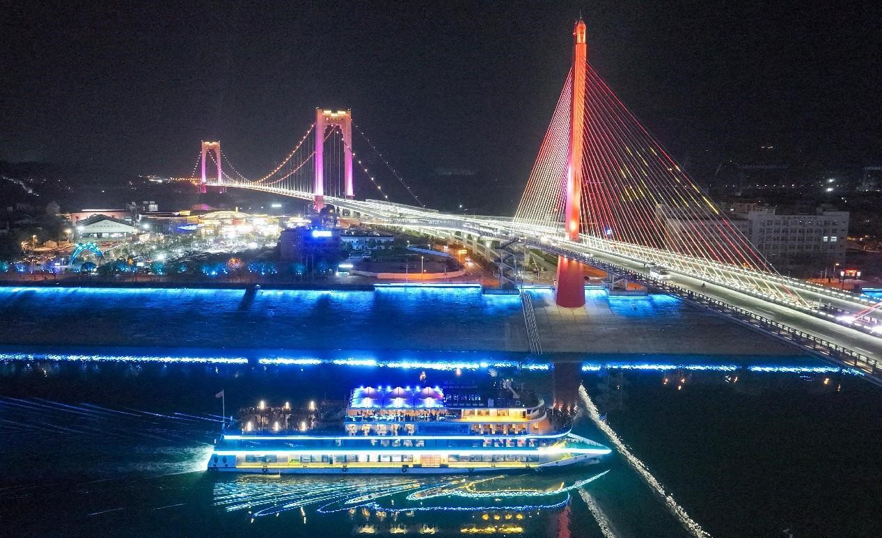 A ship carrying tourists cruises on the Yangtze River in Yichang, central China's Hubei province, March 25, 2023. (People's Daily Online/Yang Dong)