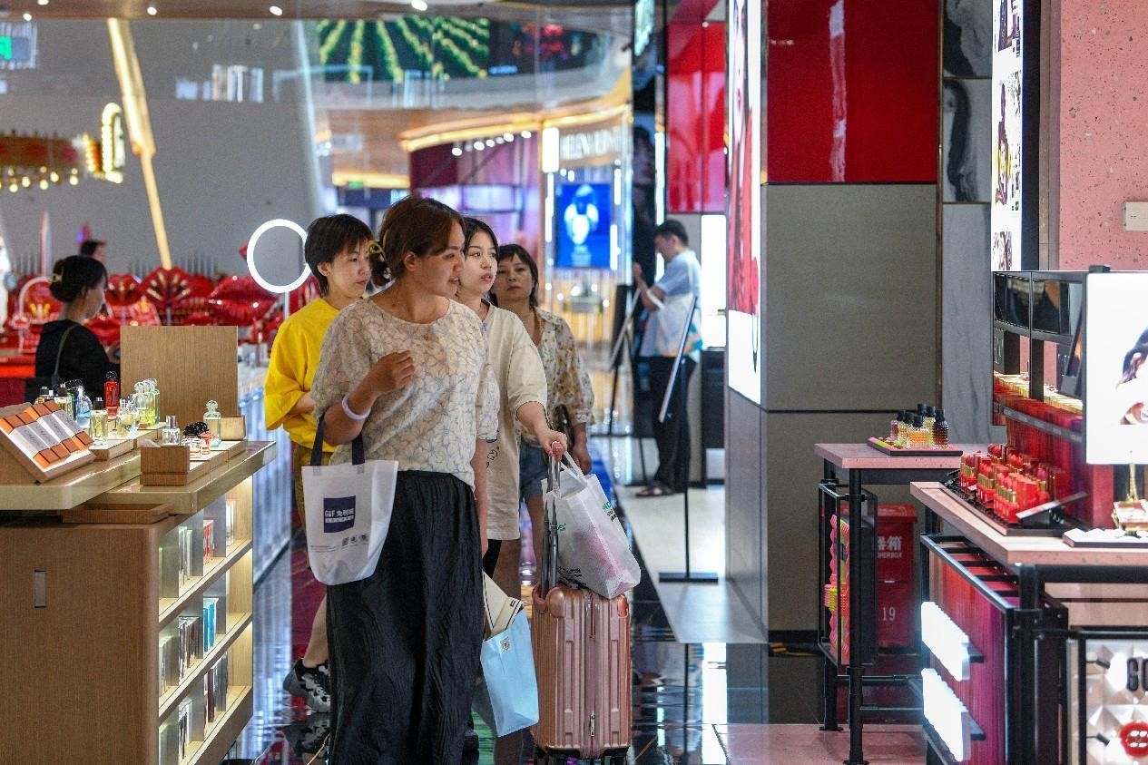 People shop in a duty-free plaza in Haikou, south China's Hainan province, April 1, 2023. (People's Daily Online/Su Bikun)