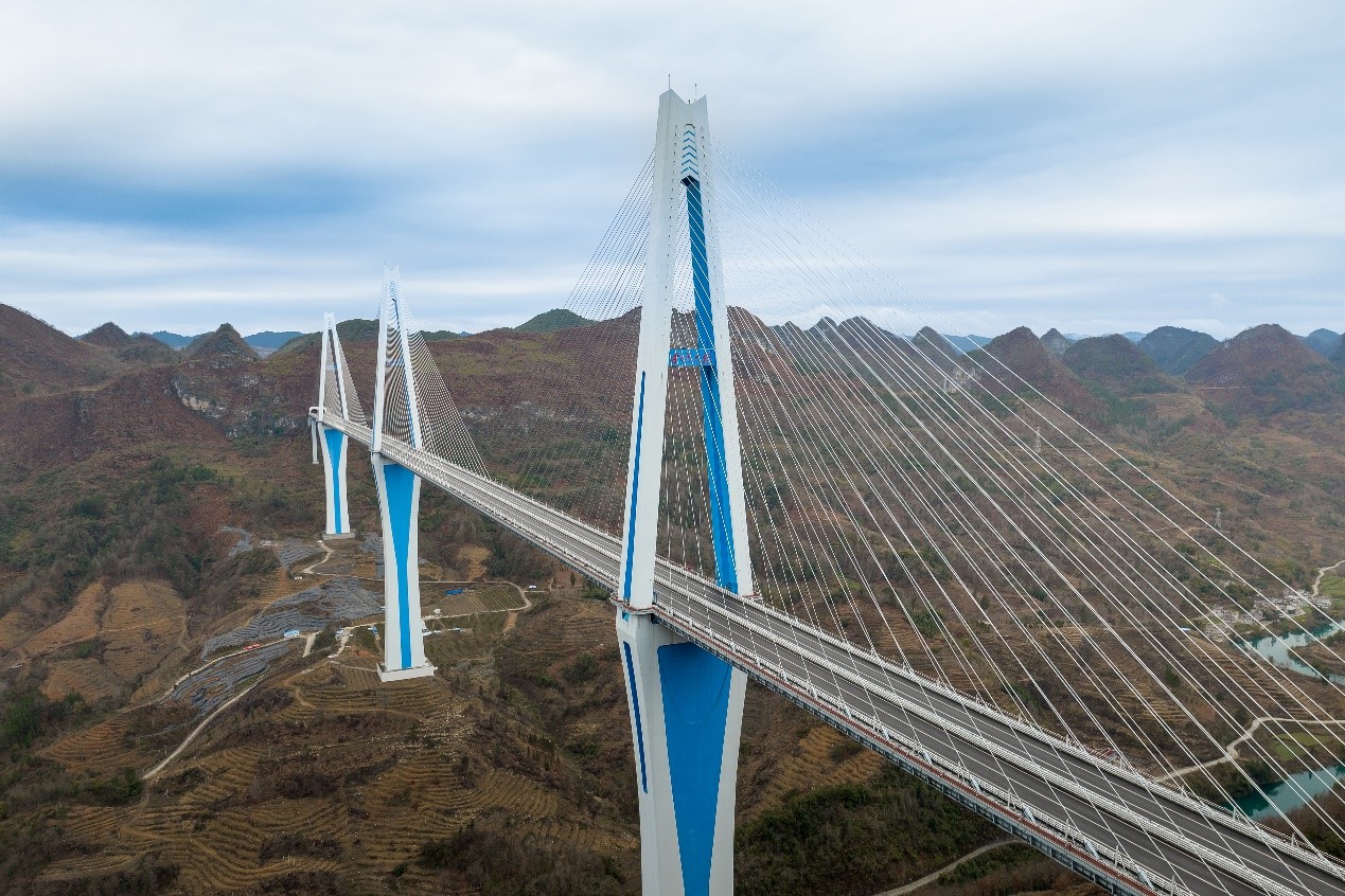 The Pingtang Bridge, spanning 2,135 meters, in Pingtang county of Guizhou, is a cable-suspended bridge that boasts of the world's highest concrete bridge tower at 332 meters. It won the 38th Gustavs Lindesar Prize, the “Nobel Prize” of the international bridge industry.