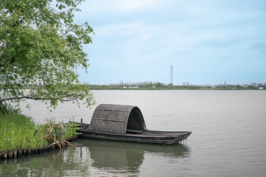 A black-awning boat in Wujiang district, Suzhou city, east China's Jiangsu Province. (People's Daily Online/Ma Taotao)