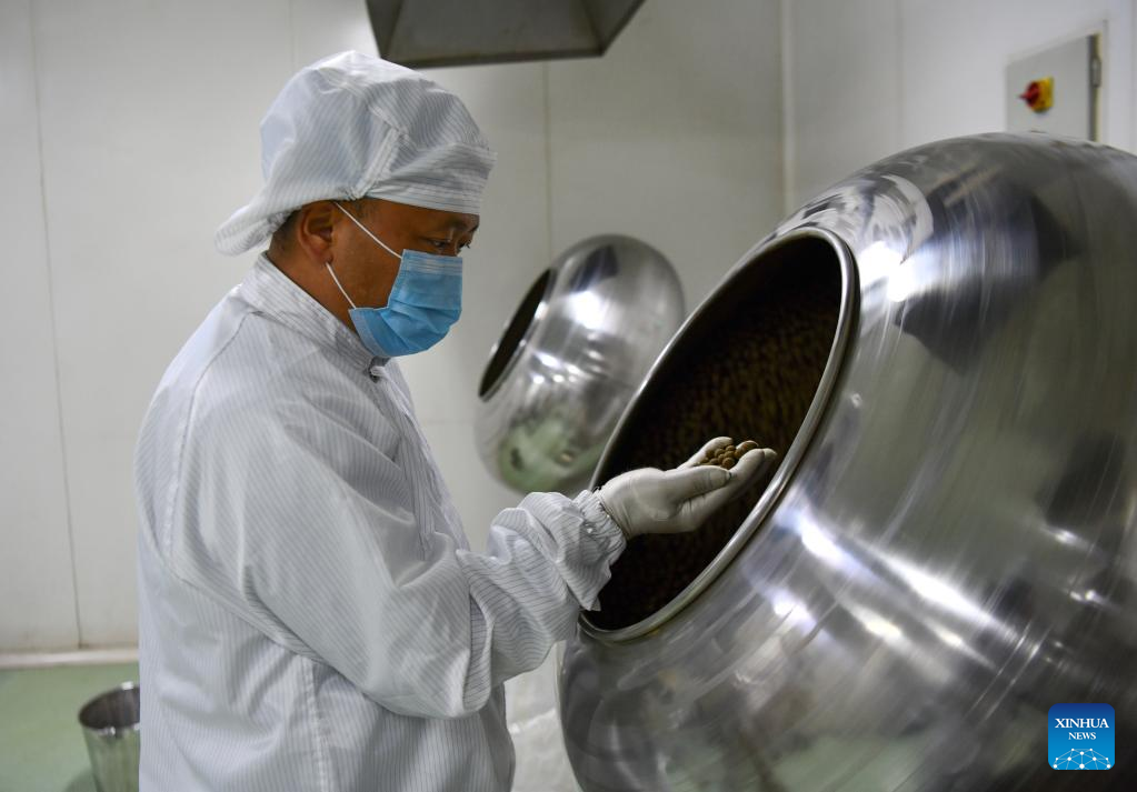 Buchung Tsering has also compiled some instruction manuals of Tibetan medicine. In 2021, he was awarded the title of "Tibetan Craftsman." (Xinhua/Jigme Dorje)