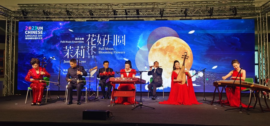 Chinese musicians perform at the opening ceremony of the UN Chinese Language Day event in Vienna, Austria, May 2, 2023. (China's Permanent Mission to the UN in Vienna/Handout via Xinhua)