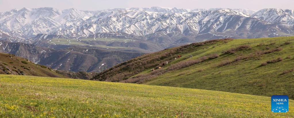 This photo taken on April 29, 2023 shows a prairie in the Barlik Mountain area in Yumin County, northwest China's Xinjiang Uygur Autonomous Region. (Photo by Zhang Du/Xinhua)