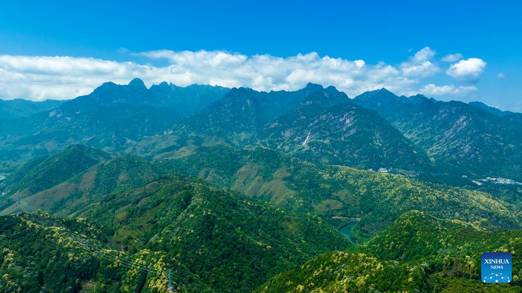 This aerial photo taken on April 26, 2023 shows scenery of Huangshan Mountain in east China's Anhui Province. Huangshan, one of China's most famous mountains, is known for its majestic scenic beauty, strange rocks, cloud-shrouded peaks and ancient pines. It was listed as a UNESCO World Heritage Site in 1990. (Photo by Fan Chengzhu/Xinhua)