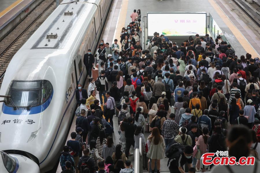 Passengers walk on the platform at Nanjing Railway Station in Nanjing, east China's Jiangsu Province, May 3, 2023. (Photo: China News Service/Yang Bo)