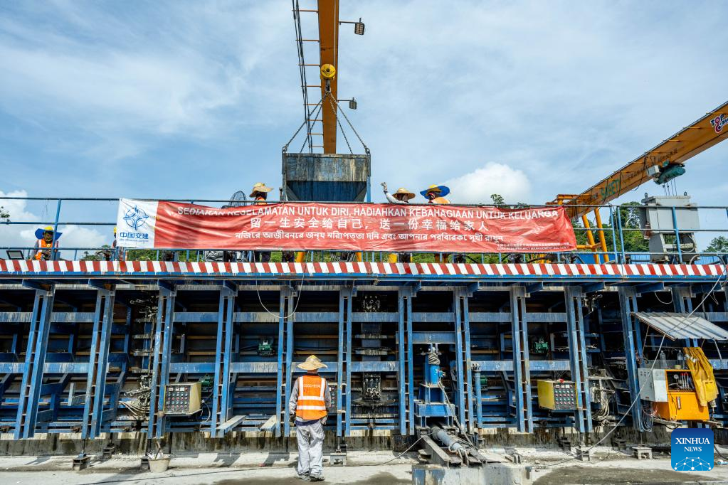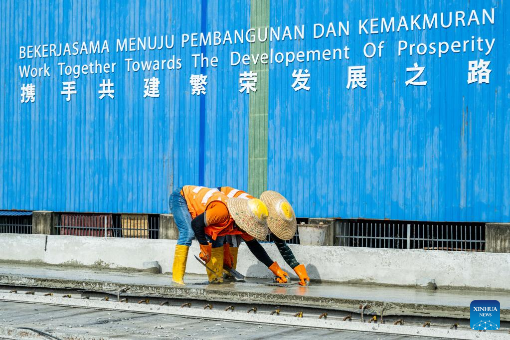 KUALA LUMPUR, May 4 (Xinhua) -- Under the scorching sun in Malaysia, the construction work of the East Coast Rail Link (ECRL), a major infrastructure project under the Belt and Road Initiative (BRI), was in full swing.