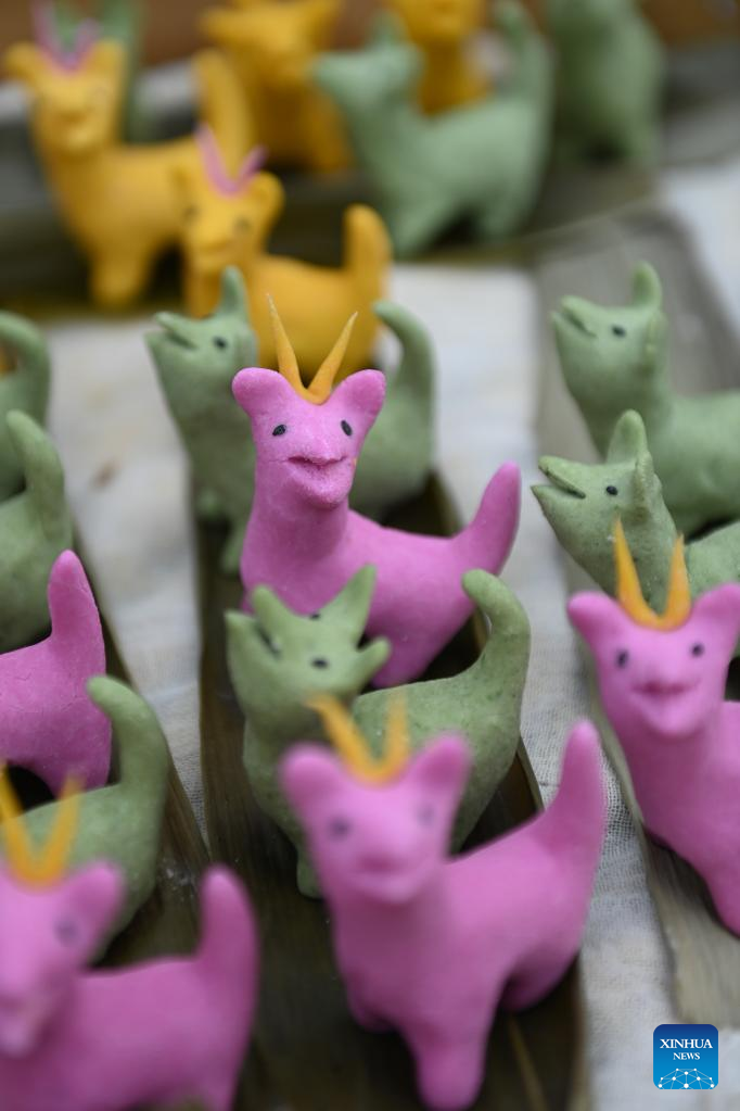 This photo shows dog-shaped food made from glutinous rice flour by villagers at Dingshanhe Village, Tangqi Township, Hangzhou, east China's Zhejiang Province, May 4, 2023. Villagers mark the upcoming "Lixia", or beginning of summer, by making various kinds of traditional food here. "Lixia" falls on May 6 this year. (Xinhua/Huang Zongzhi)