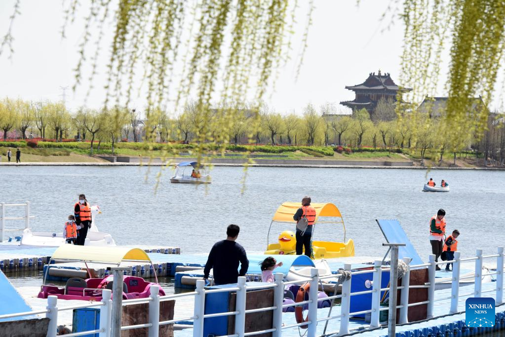 Tourists have fun at a park in Qingdao, east China's Shandong Province, April 8, 2023. (Xinhua/Li Ziheng)
