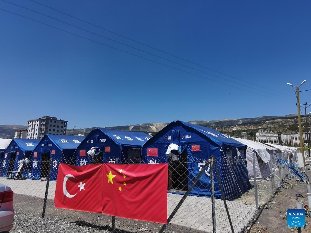 This photo taken with mobile phone on May 5, 2023 shows a view of the Chinese tent village in Kahramanmaras, Türkiye. (Xinhua/Li Zhenbei)