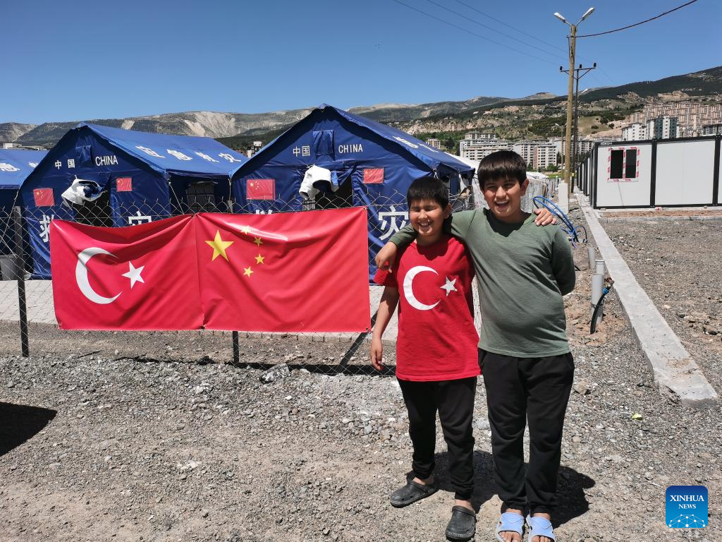 "We have a great time in various activities with Chinese volunteers, for example, we watched football games with them, and it was great fun. We also learned Chinese and played games," Emir Camkomuru, a 13-year-old earthquake victim, told Xinhua.