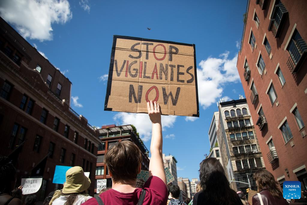 NEW YORK, May 6 (Xinhua) -- Demonstrations went on in New York City on Saturday, five days after 30-year-old black man Jordan Neely was allegedly choked to death by 24-year-old white U.S. marine veteran Daniel Penny on a subway in the city.